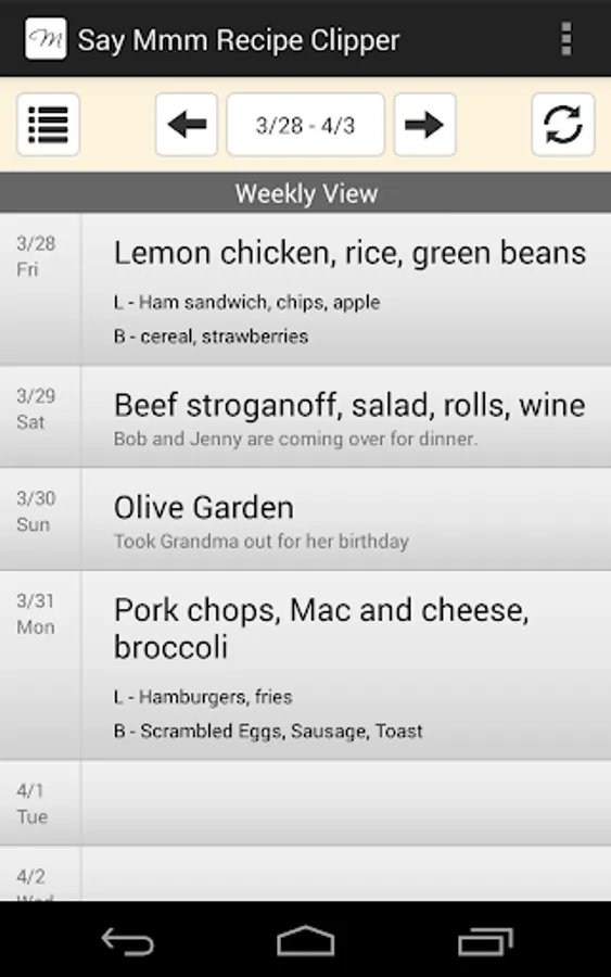 The Say Mmm Recipe Clipper app makes it easy to save online recipes right from your mobile phone browser. You can also sync recipes from your Say Mmm account to your phone where it is fast to view, search, and sort your recipes. You can add recipes and other ideas to meal plans and view your plans by month, week, and day. Plus you can create shopping lists from recipes or add items individually and check them off while in the store.