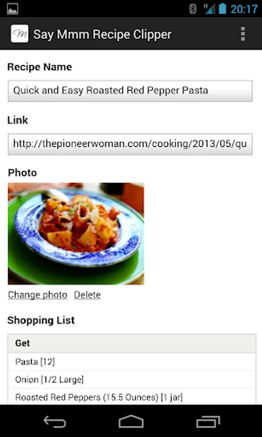 That’s all there is to it, and Say Mmm can usually automatically save the recipe name, image, and grocery list along with the link.