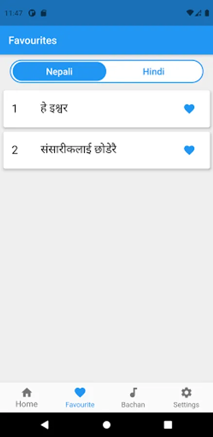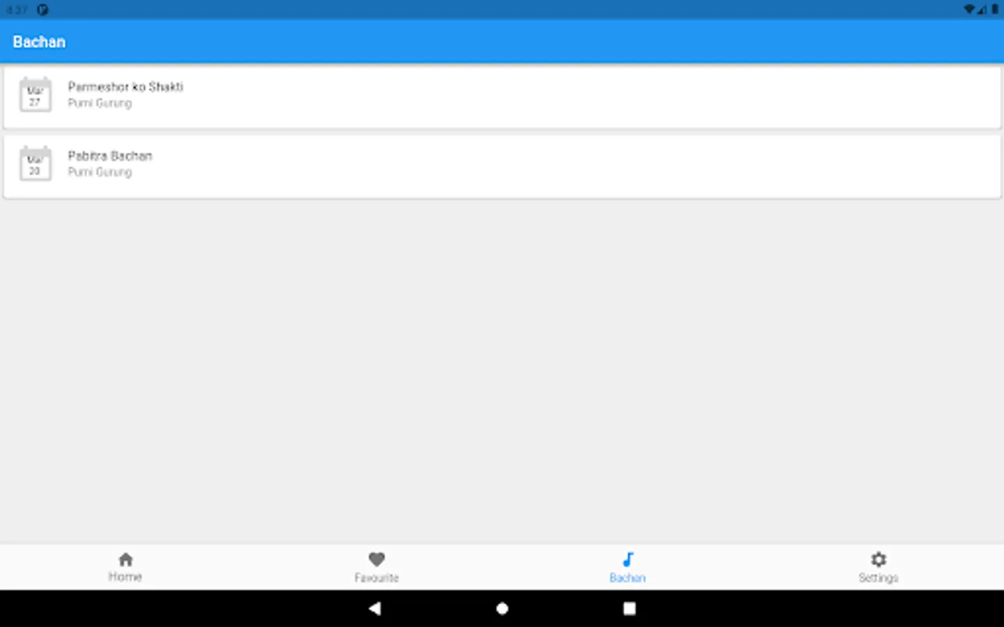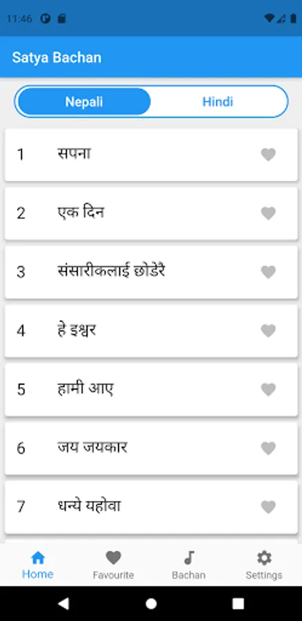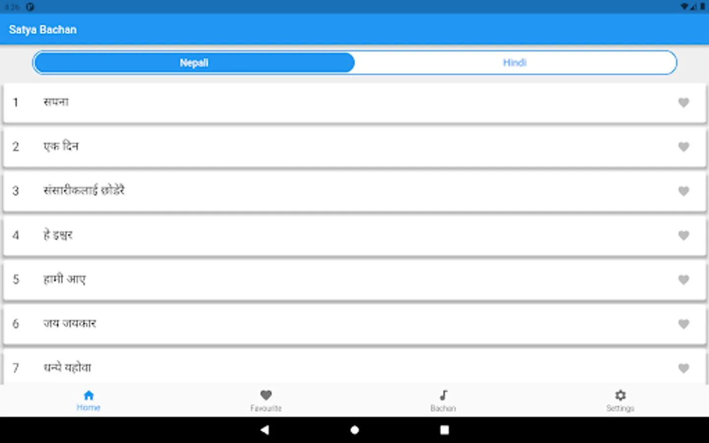 Satya Bachan is an android applicaiton which contains nepali and hindi bhajans with its lyrics and also has audio lectures given by leaders from around the Nepal.
