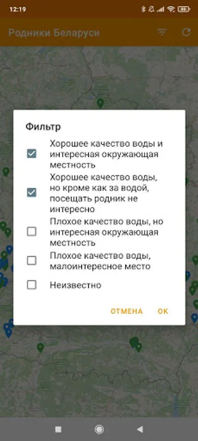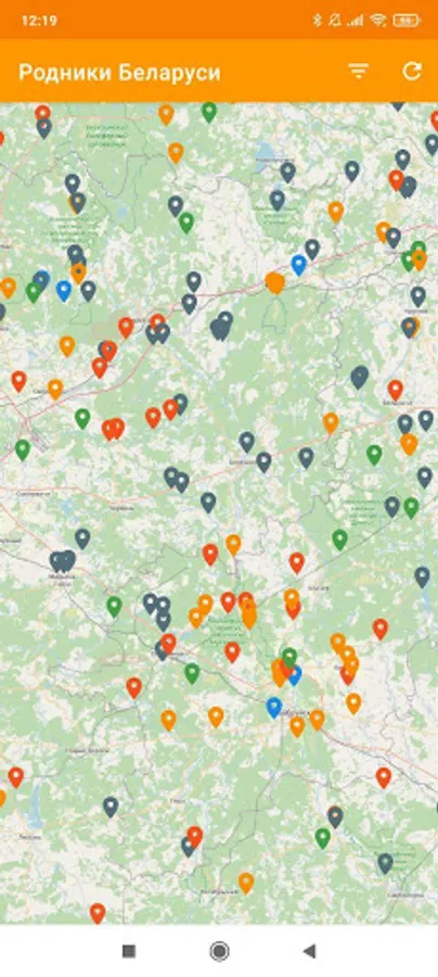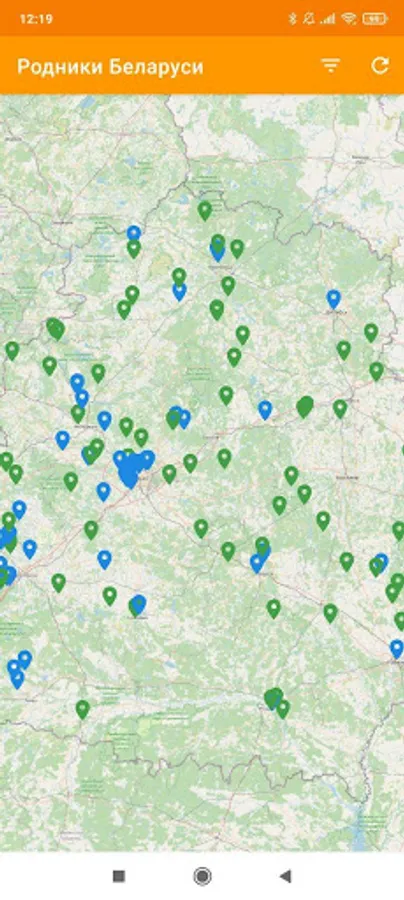 Map of springs of Belarus based on data from the site rodnikbel.by