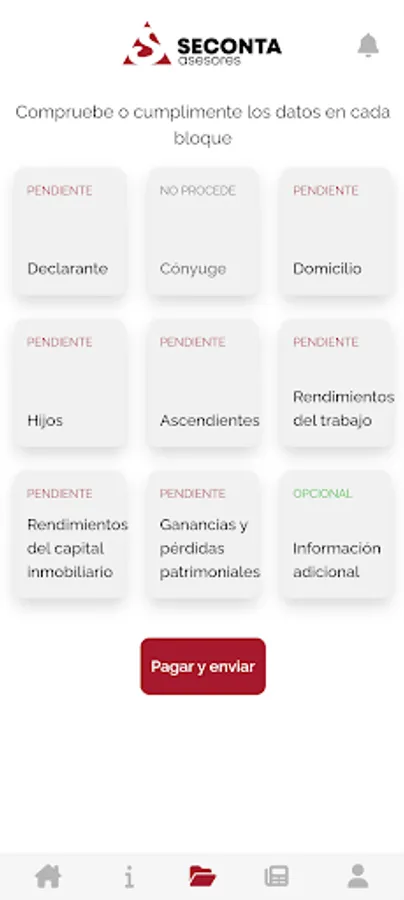 Enter or Review your data - If we already have your data, you will see them ready for your review. Complete the different sections, they will be checked to review errors and verify that all the information is complete.