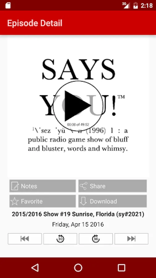 This is the most convenient way to access Says You! on your phone. With this app you are always connected to the latest episodes and the show. You can also star your favorite episodes and save them to a list so you can easily enjoy them over and over! This app is complete access to Says You! and if you're a fan of the show you won't want to be without it!
