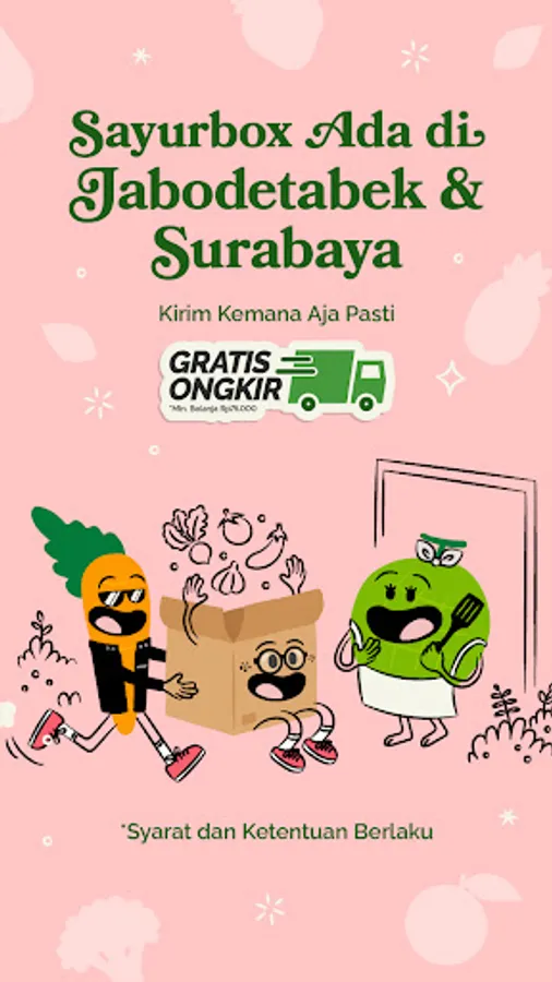 Sayurbox helps you to find all the things you need for your kitchen right on your fingertips. As simple as click, click, scroll, scroll, and your Sayurbox order will arrive at your doorstep! Available for Jabodetabek and Surabaya. Free shipping fee!*