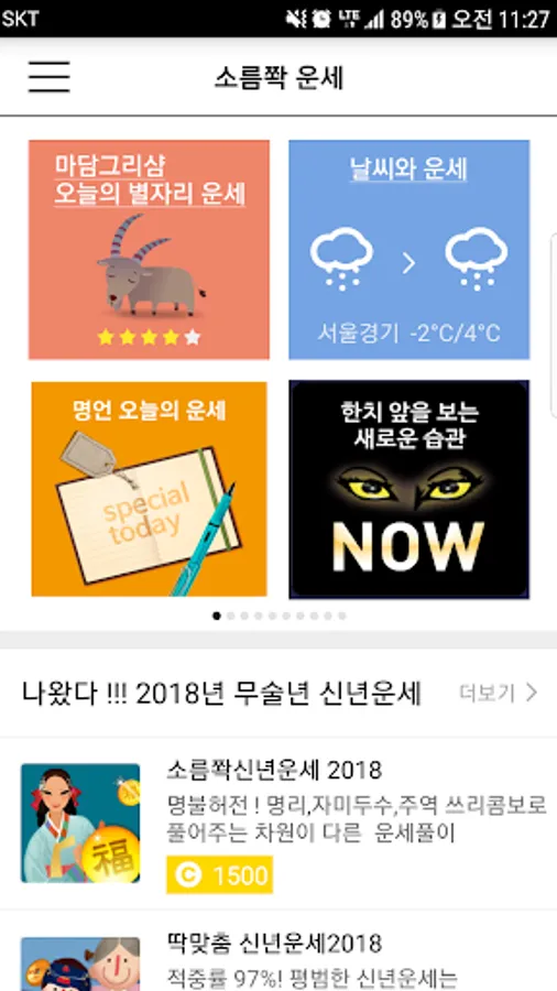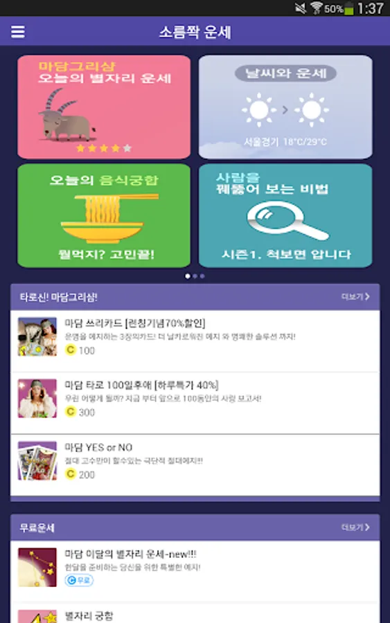 Korea's first "Goosebumps Alarm", "Weather and Fortune", "Fortune-telling for the next 50 days", "Secrets to see through people," "Madam Grisham's past life experience", "Psychological final analysis", etc. You can enjoy various exciting fortune-telling in various forms.