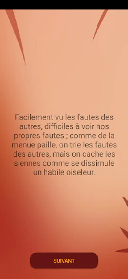 This application is simple and allows you to have in your smartphone a Buddhist companion who each time offers you new wisdom from this thousand-year-old doctrine which continues today to bring well-being and serenity of mind to all those who need it. All on a soothing animated background.