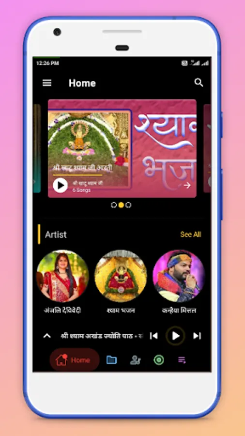 # Shyam Bhajan App Provide Simple and Multi Functionalty Bhajan Player Layout.