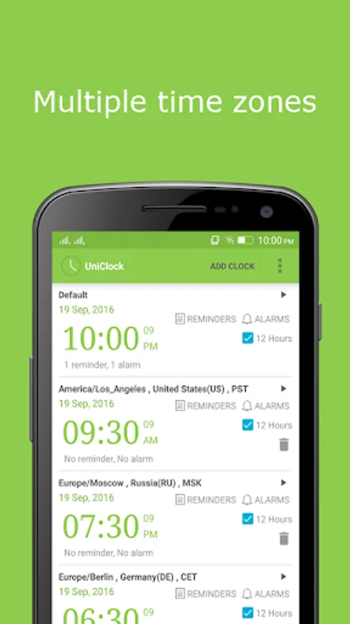 UniClock provides you to keep track of all the time zones across the globe and also enables you to set alarms and reminders in any time zone you want. It can be a perfect replacement of your stock clock app.
