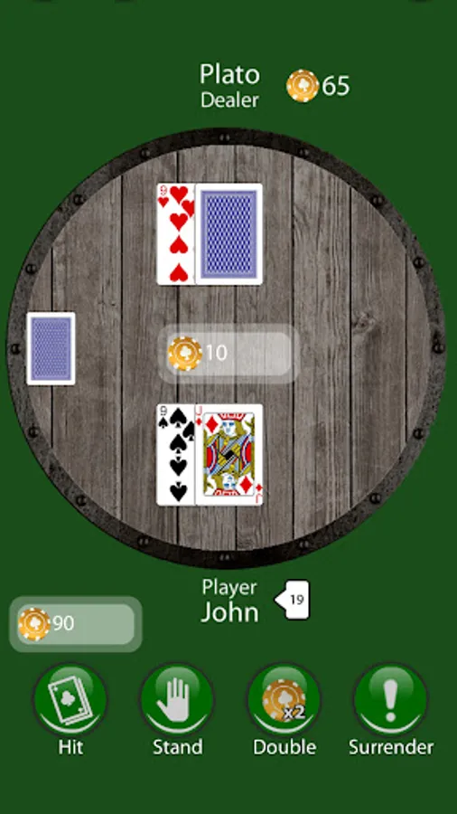 5. SURRENDER - refusal, you can refuse to play (surrender), but only until 2 cards are open (he did not take the others). The dealer takes half of the player's bet in this case.
