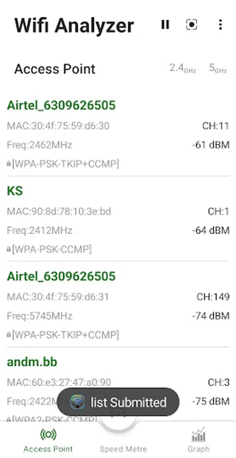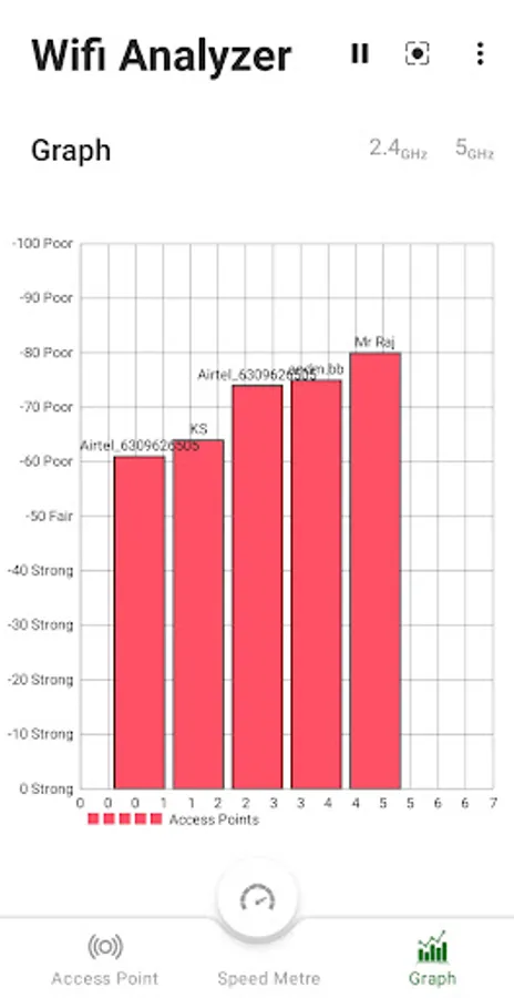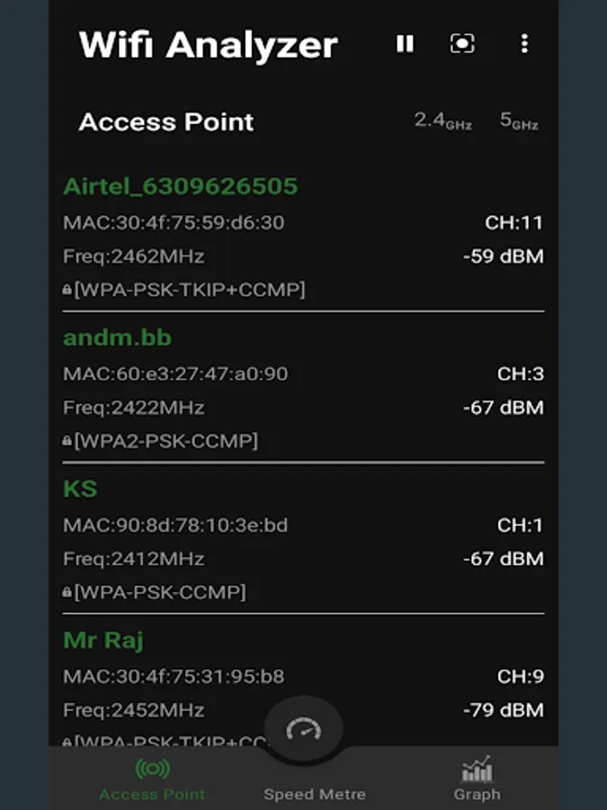 Signal Strength History: WiFi Analyzer fast and secure keeps a record of signal strength variations over time, enabling you to identify patterns and troubleshoot any issues that may be affecting your network performance. This historical data helps you make informed decisions for network optimization.