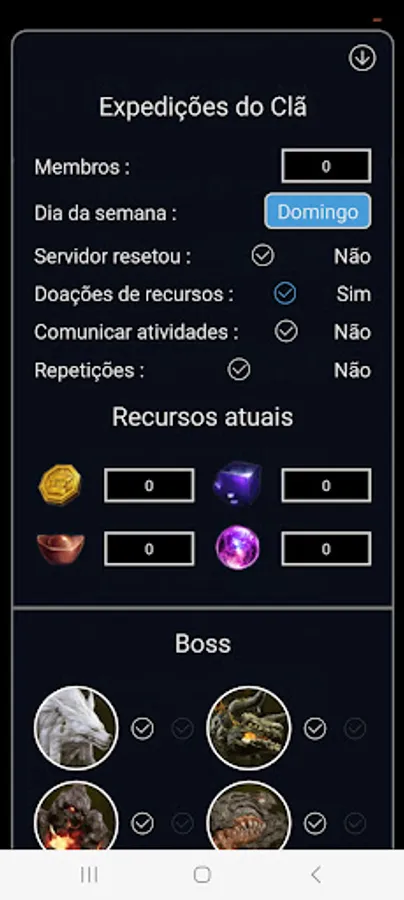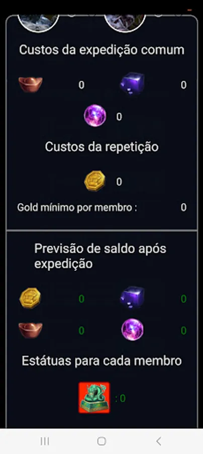 * Calculator of clan resources, repetition and amount of statues acquired in case of success.