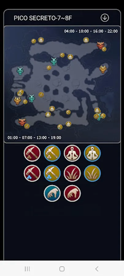* Maps: In this function you can view the best resource and XP spots available in the game.
