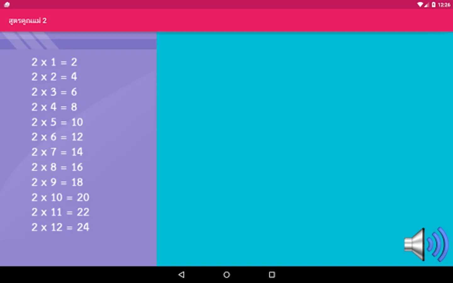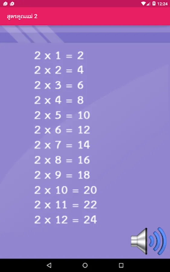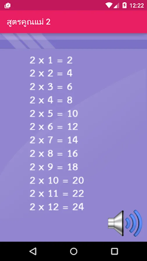 Press the Menu page to see a multiplication of each parent. Then a speaker icon to listen to the sound. Suitable for children who may not read very well.