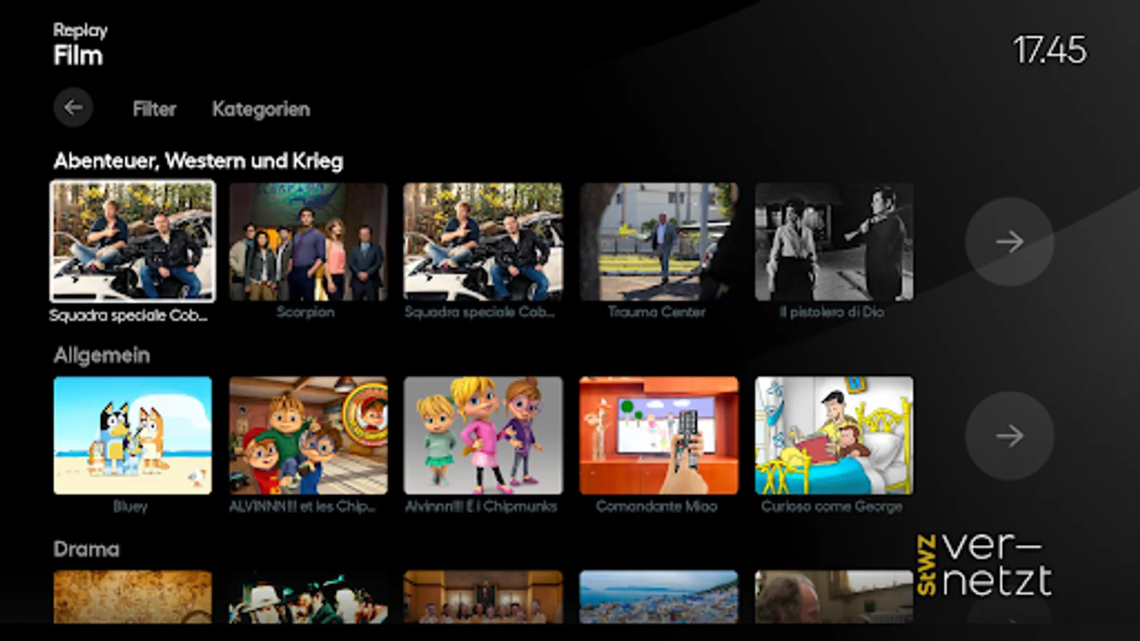 You can access your TV subscription with the “StWZ Netzwerked” TV app. Load the app onto your Android television or your Android TV box and enjoy your favorite programs via the fiber optic network of "StWZ Netzwerk". The prerequisite for using the app is a subscription to the Internet and TV from «StWZ Netzwerk». The app is provided free of charge by «StWZ Netzwerk».