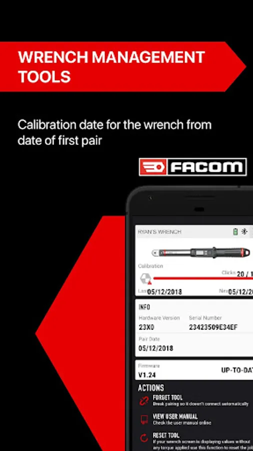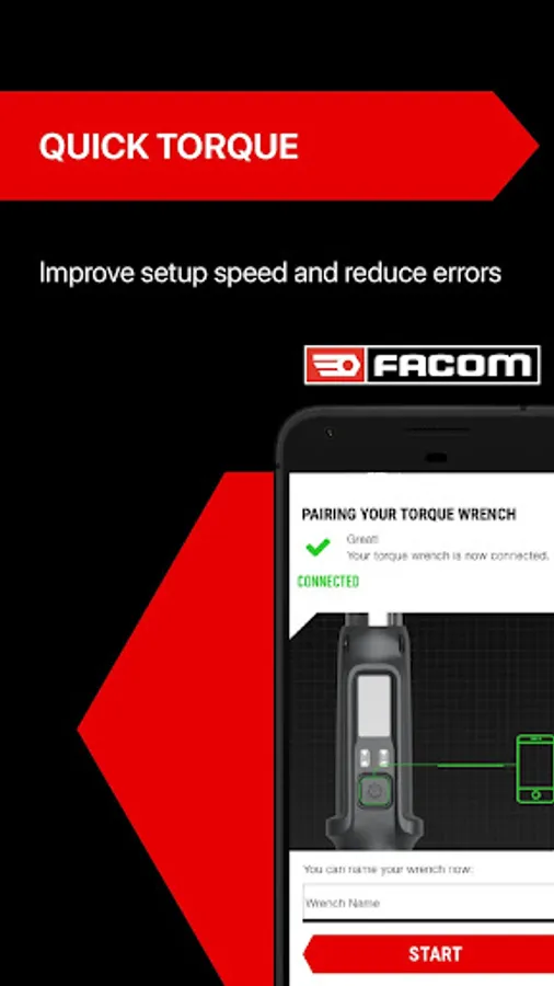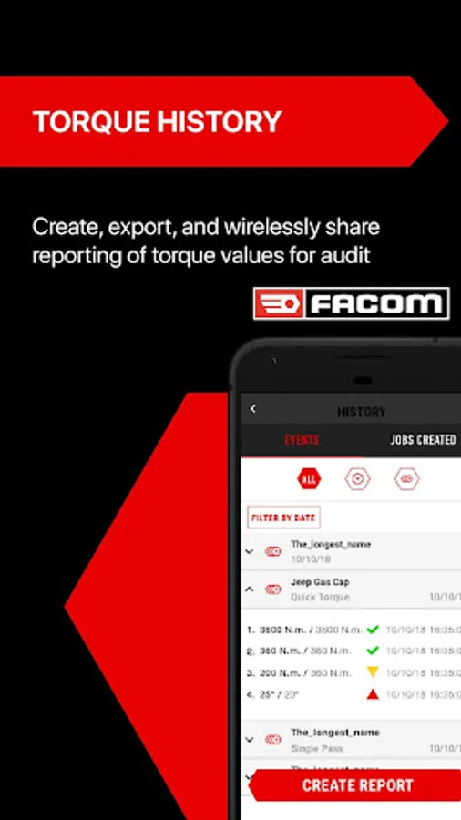 With the Facom App, take control of your Smart Torque wrench and set quickly target torque, help reduce errors, and record measurement for audit. Set values, recall favorites, and generate reports.