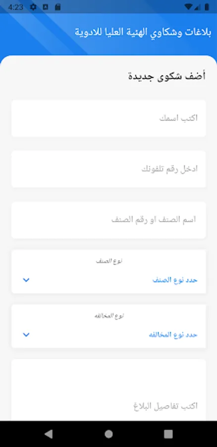 نظام شامل لكل الادوية المصرح بها في اليمن التي مرت من خلال الهيئة العليا للادوية ويمكنك النظام الاطلاع على حاله الصنف من حيث تسجيله في نظام الهيئة وتفاصيل الصنف كاملة وعرض سعر البيع للجمهور والابلاغ عن اي مخالفات او معلومات لاتتطابق مع معلومات الصنف