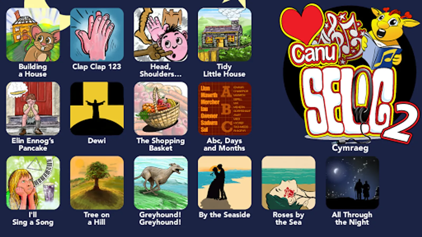 Singing songs with children is very valuable as they develop an ear for language. Rhyme and rhythm supports the child with hearing and voicing sounds and words, which will later also help the child to read. Non-Welsh speaking parents can use this app to boost their children’s opportunity to become bilingual / multi-lingual. Songs are also suitable for schools and community groups.