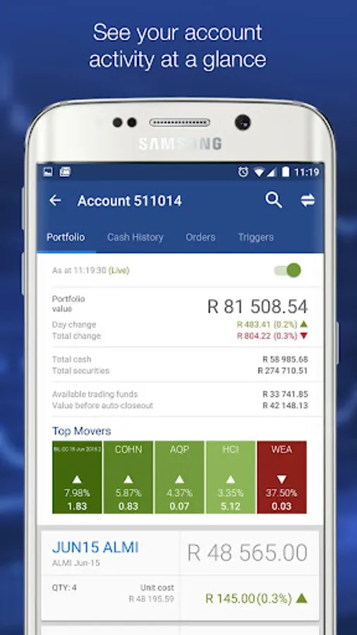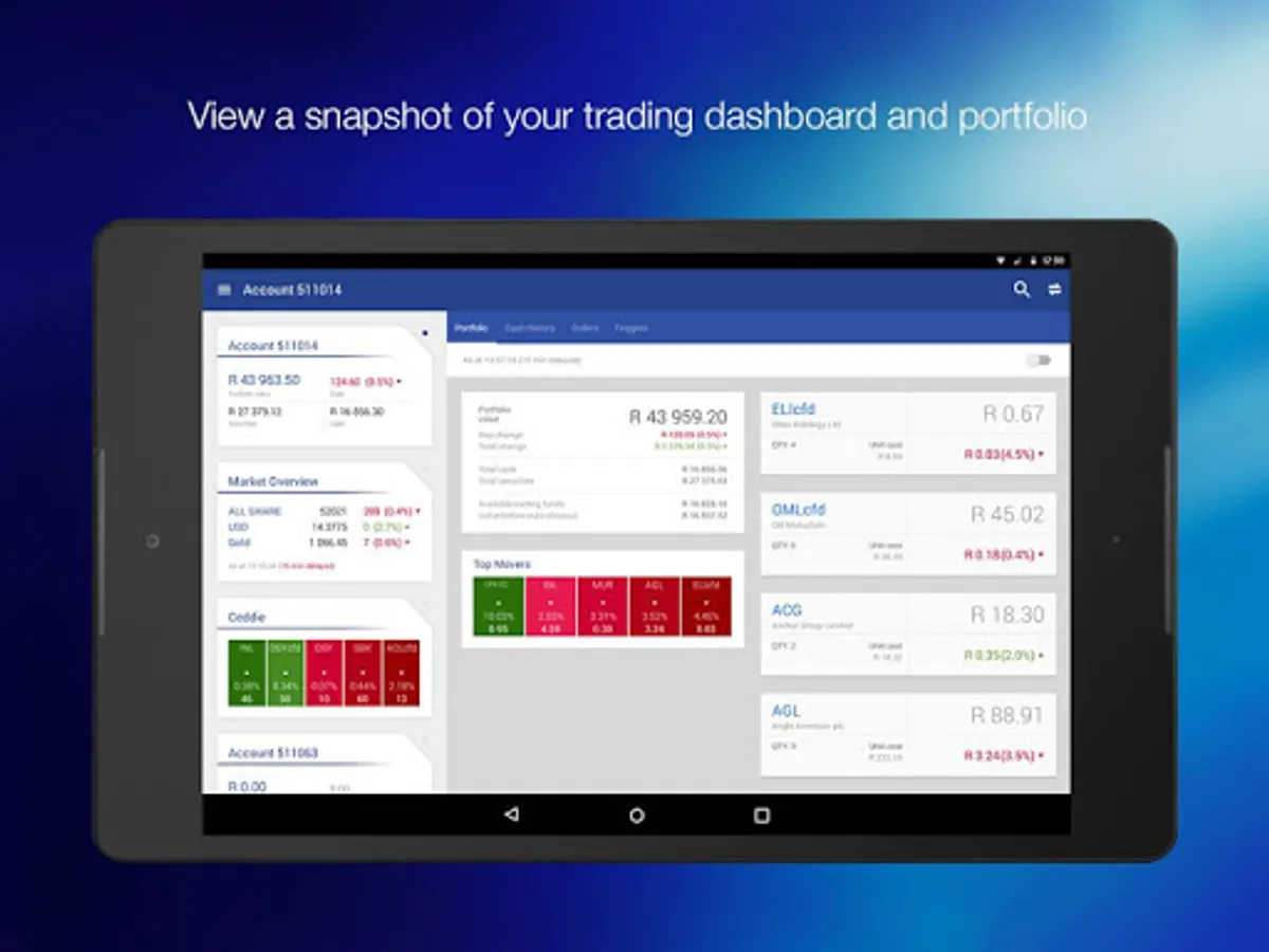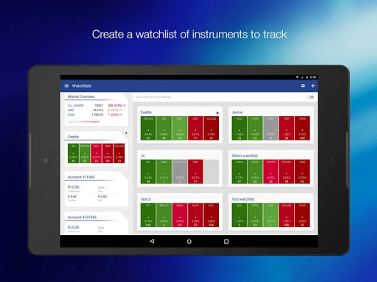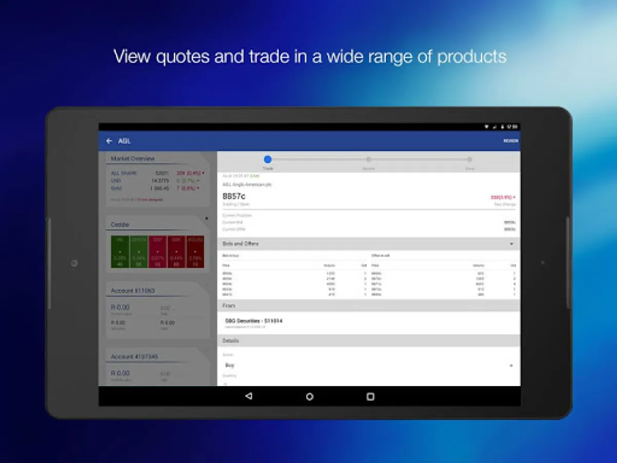 The Standard Online Share Trading mobile devices application is a fast, secure and free application (OST App) that allows you to conduct real-time trading in shares, derivatives and other investment instruments which are listed on the JSE Limited and are offered by SBG Securities (Pty) Ltd. (SBG Sec).
