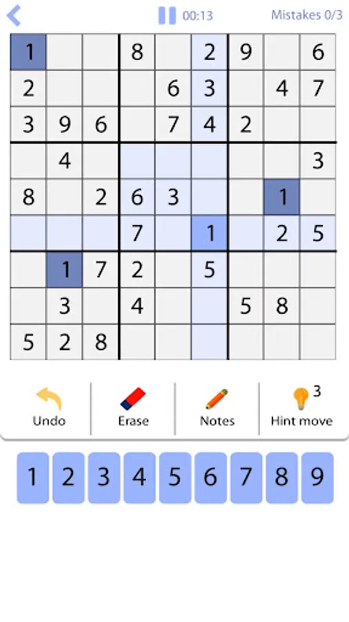 - Three levels of difficulty, you can choose Sudoku easy or difficult;