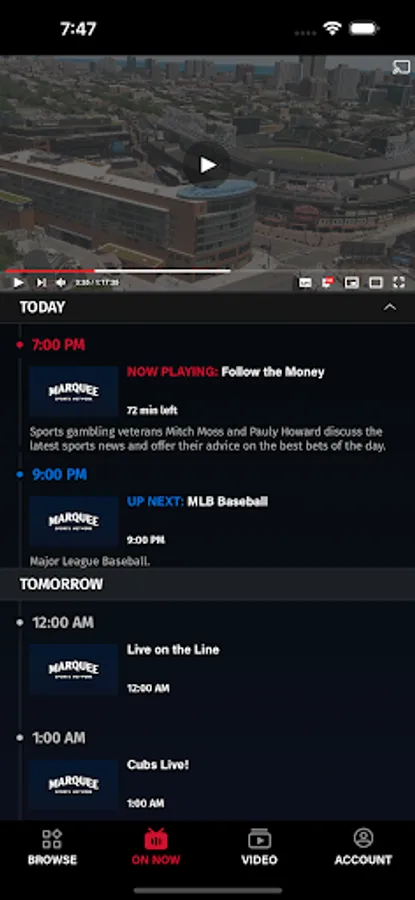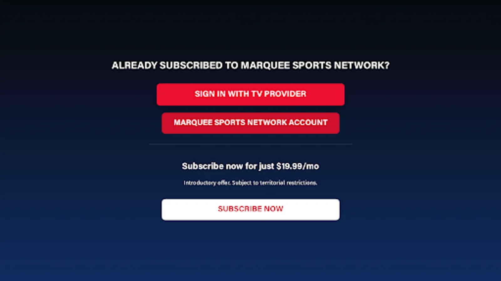 The new Marquee Sports Network App features a direct-to-consumer subscription offering allowing in-market users to subscribe directly to Marquee Sports Network, as well as the ability to log-in with their existing cable or streaming provider.