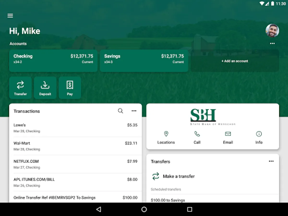 To use the State Bank of Herscher App, you must be enrolled as an State Bank of Herscher Internet Banking user. If you currently use our Internet Banking, simply download the app, launch it, and login with the same Internet Banking credentials. After you successfully login to the app, your accounts and transactions will begin updating.