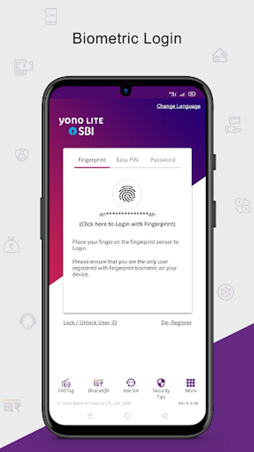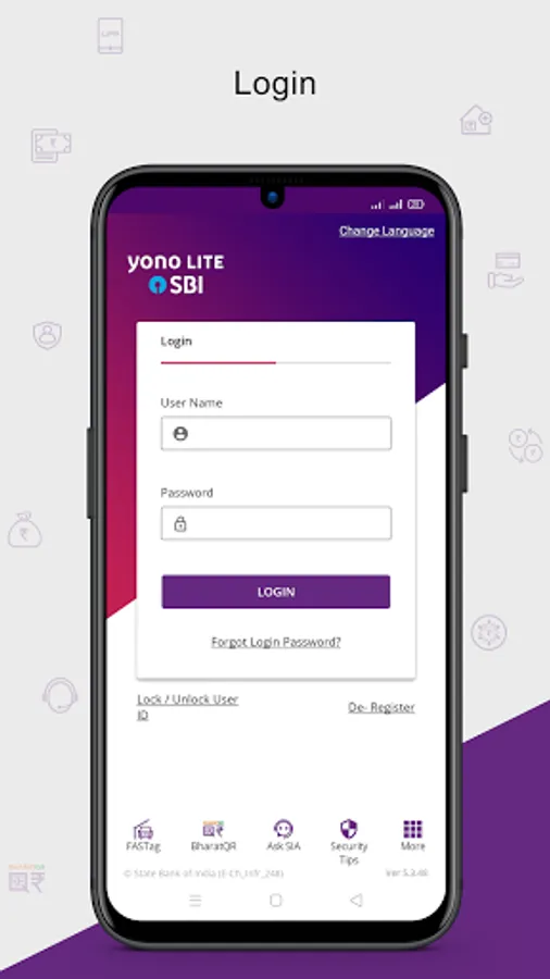 Mobile Banking application for Smart Phone customers of SBI supporting English, Hindi, Telugu, Tamil, Malayalam, Kannada, Marathi, Bengali, Odia, Punjabi, Gujarati, Assamese and Kashmiri languages. Use your Retail Internet Banking credentials to login or register afresh through the Register > New User option.