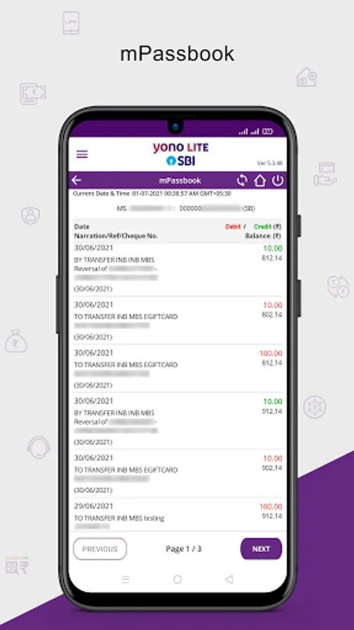 • Detailed account information (Transaction / Deposit / Loan / PPF / SSA accounts)