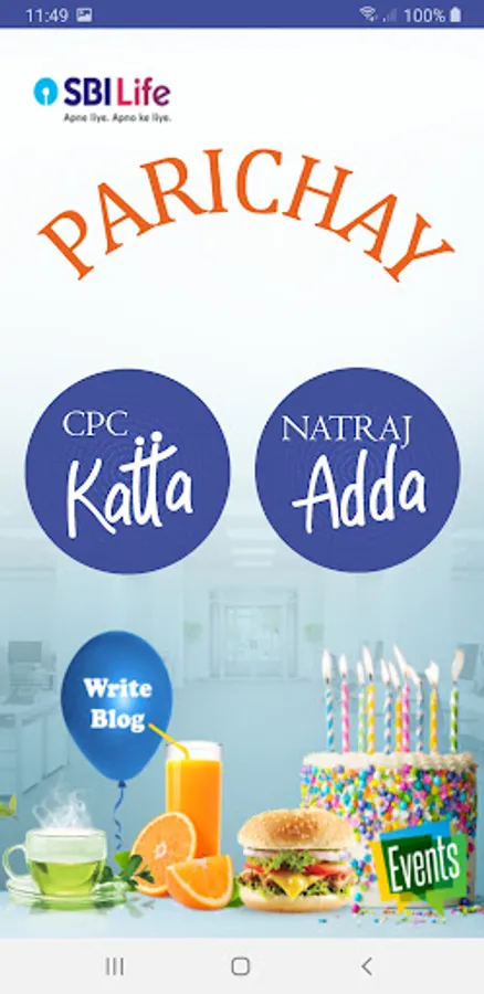 SBI Life - CPC Katta is a platform for its CPC employees to come together on digital platform. Where they can know about events, write blogs, share ideas, know SBI Life - CPC canteen menu, order food to meeting rooms.