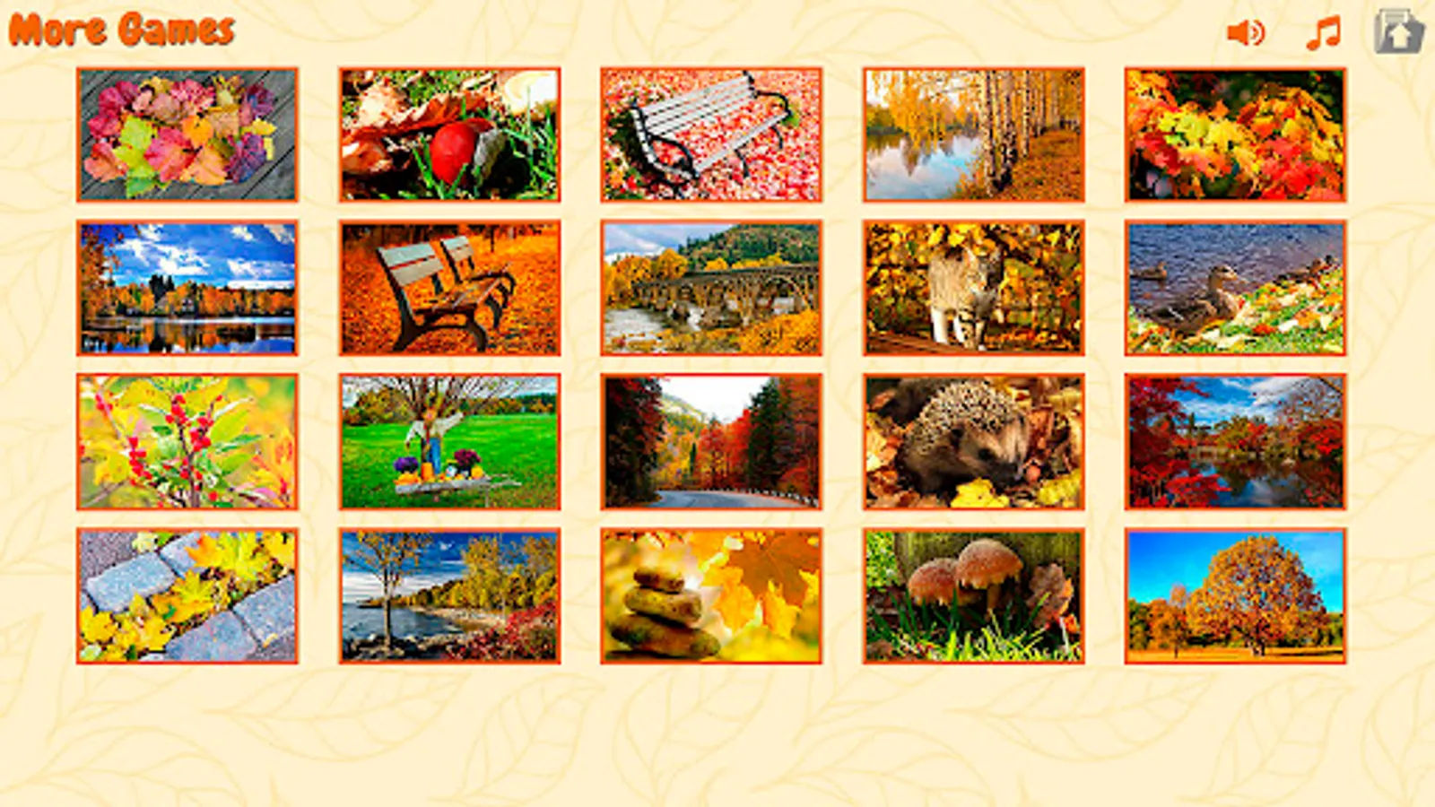 When the summer ended and cold breath of fall is felt, many begin to long and remember about warm summer. Of course, all so, but also in an autumn season is the charm. In our game "Puzzles Fall" you will be able to enjoy beautiful pictures where the foliage of trees gets incredibly colourful shades which really should admire. In this game each picture to be divided into 56 elements. Still there is mode of the hint and the mode of preservation (if it is necessary to distract somewhere, then you will be able always to continue game since that moment on which you stopped). And when quiet music plays, you can relax after labor everyday life. We hope, our puzzles very much will be pleasant to you and will bring the mass of pleasure.