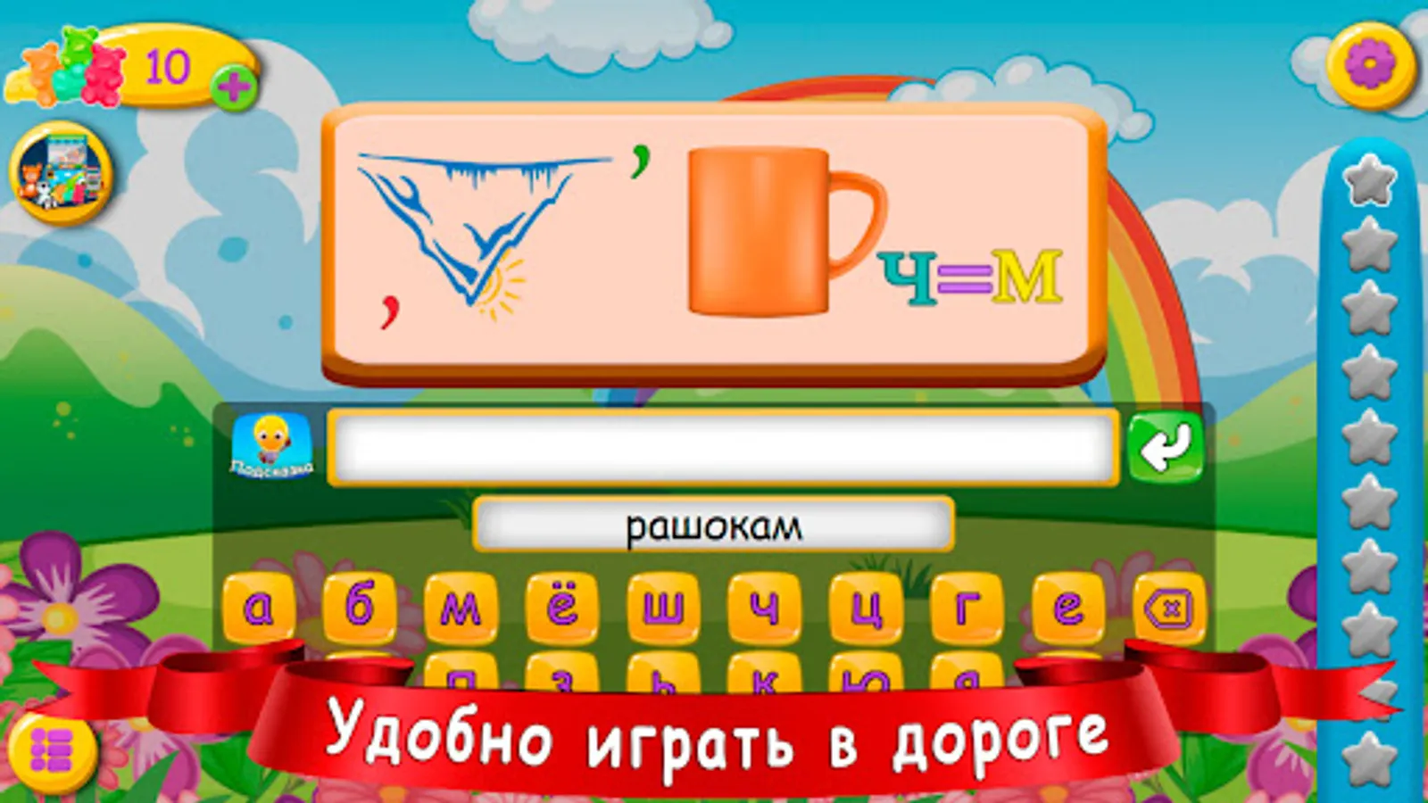 The child needs to carefully look at the pictures, try to unravel the encrypted word and enter it in the answer field. And if something does not work out, then the "hint" button will always help the baby. The application for children riddle develops brains, resourcefulness, ingenuity and the ability to reason logically.