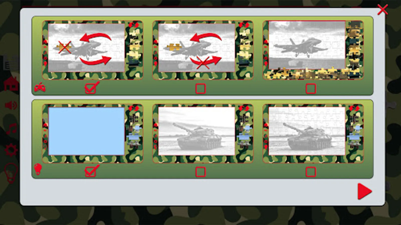 "Puzzles military equipment" - puzzle for adults which will allow to collect beautiful images of military equipment. Such puzzles it is not as simple to collect as it seems at first sight, not for nothing puzzles - the cleverest games in the world. Looking through puzzles different for adults, "Puzzles military equipment" will not remain unnoticed as it is possible to play these puzzles absolutely free of charge deriving the mass of pleasure.