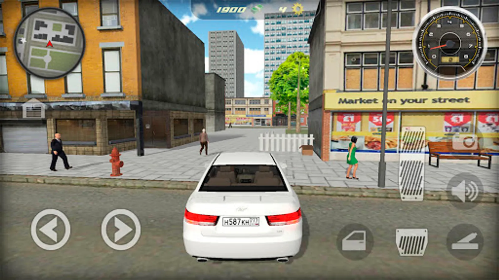 - Realistic driving sedan simulator of traffic rules and parking, with a change of camera view. Can you drive a car according to the traffic rules?