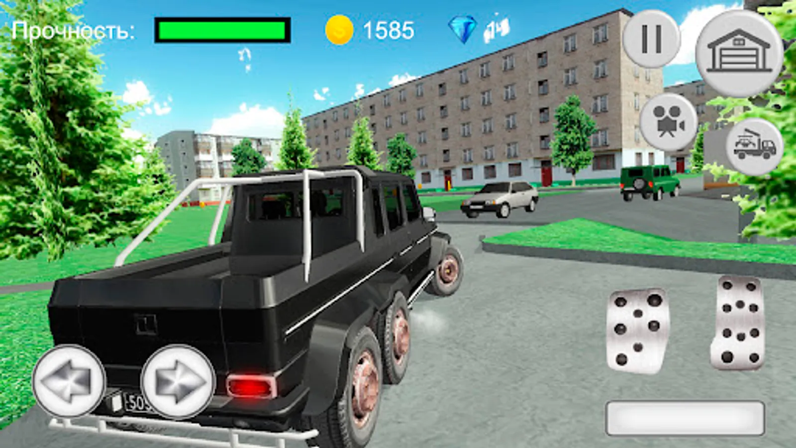 A game about a Gelik G-class AMG car - a driving simulator on city roads and off-road mud of a real Russian village. Feel the criminal atmosphere of the Russian city of the 90s. You have to drive around the city and its streets, on the dirt road and dirt in the countryside, and earn money to upgrade your Gelendwagen 6x6 six-wheeled off-road vehicle - increase engine power, increase top speed, change wheels or repaint the car!