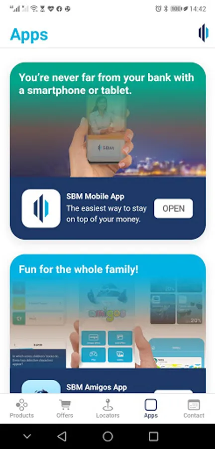 An Apps Page for easy access to other SBM apps such as ‘SBM Amigos’ and ‘SBM Mobile Banking’.