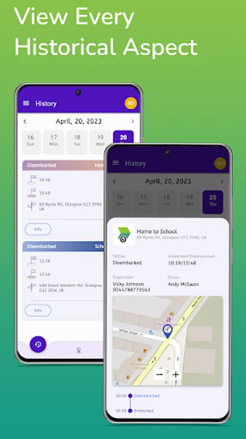 - Information on the route child is on, including Bus Plate Number, Nanny, and Driver contact details