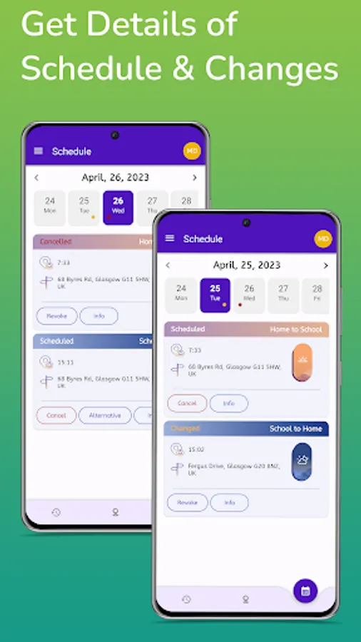 - Notification of time and place for Embarkation on School Bus in both trips from/to School