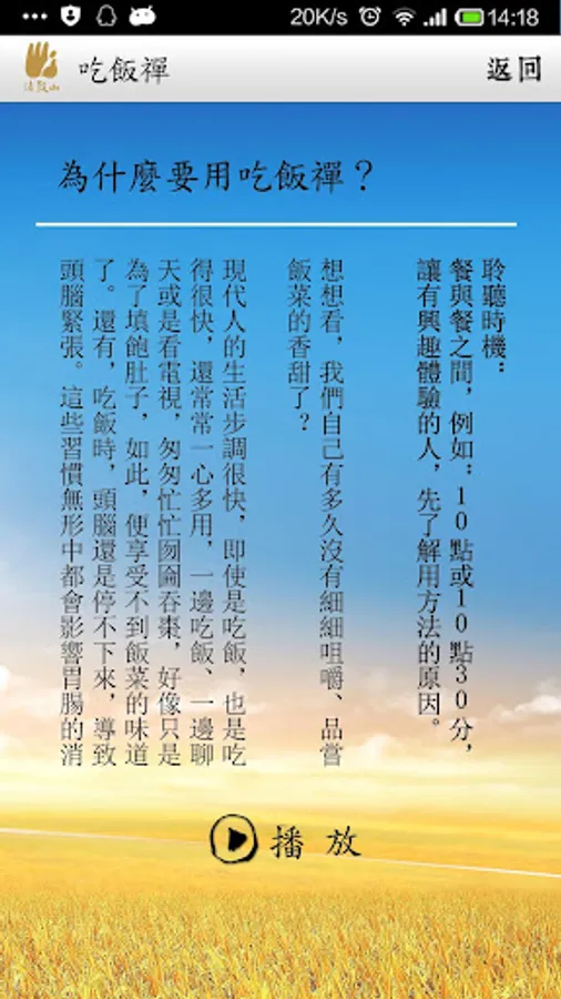 So, to help modern people to eat healthy, eat taste, and to develop good habits, the introduction of meal Dharma Drum Mountain Buddhist way to let everyone relax eat, concentrate on eating, and be able to enjoy this time during the meal.
