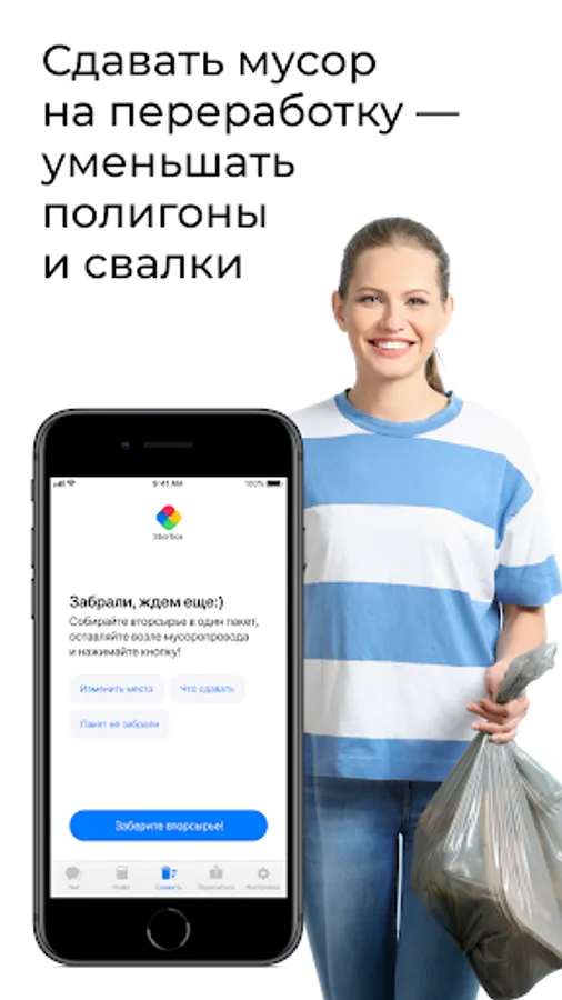 Install the application and join those who donate recyclables for recycling with the click of a button, without sorting and without leaving home!