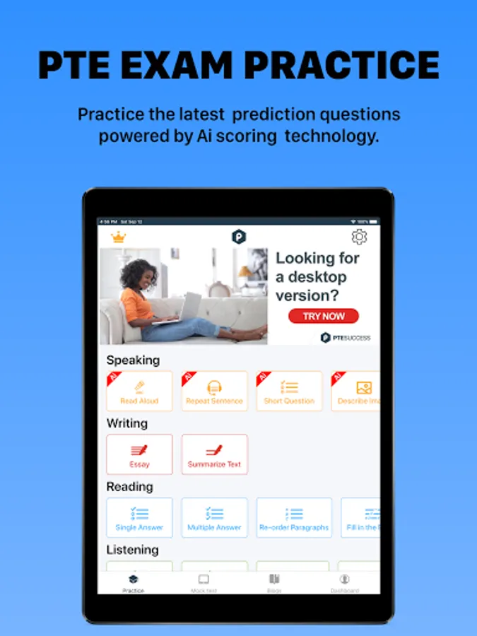 PTE Success: Top PTE Academic Exam Practice App. PTE Success Exam preparation is a practice and study APP for the PTE Academic Official Practice. Prepare confidently for the Pearson Test of English with the ultimate practice and study tool.
