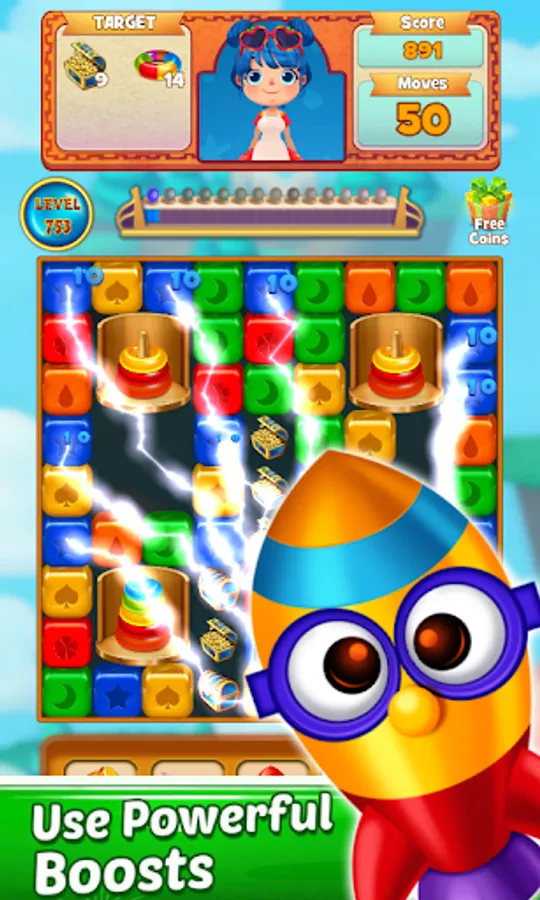 Match 2 or more cubes of the same color to solve puzzles and clear levels. With limited moves, your puzzle-solving skills will definitely be challenged.
