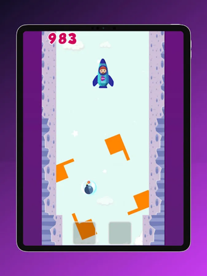 To do this, you have to dodge obstacles and pick up as many bombs and potions as they can to break down barriers and reduce the size of the rocket, making it easier for you to do it.