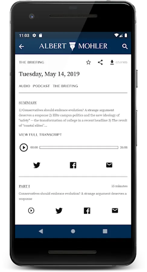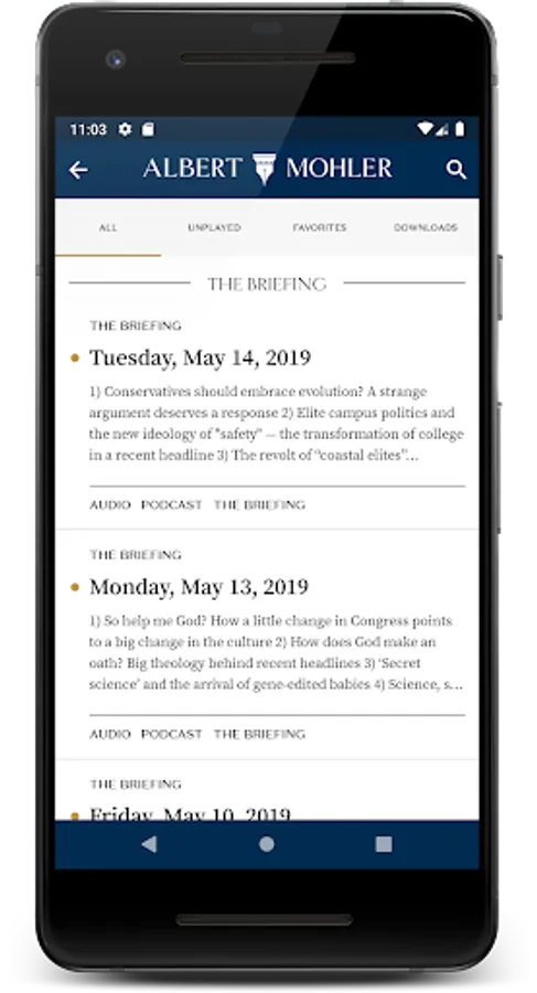 The app contains instant access to Dr. Mohler's popular daily podcast "The Briefing", extensive interviews via "Thinking In Public," as well as additional resources from the Southern Baptist Theological Seminary.