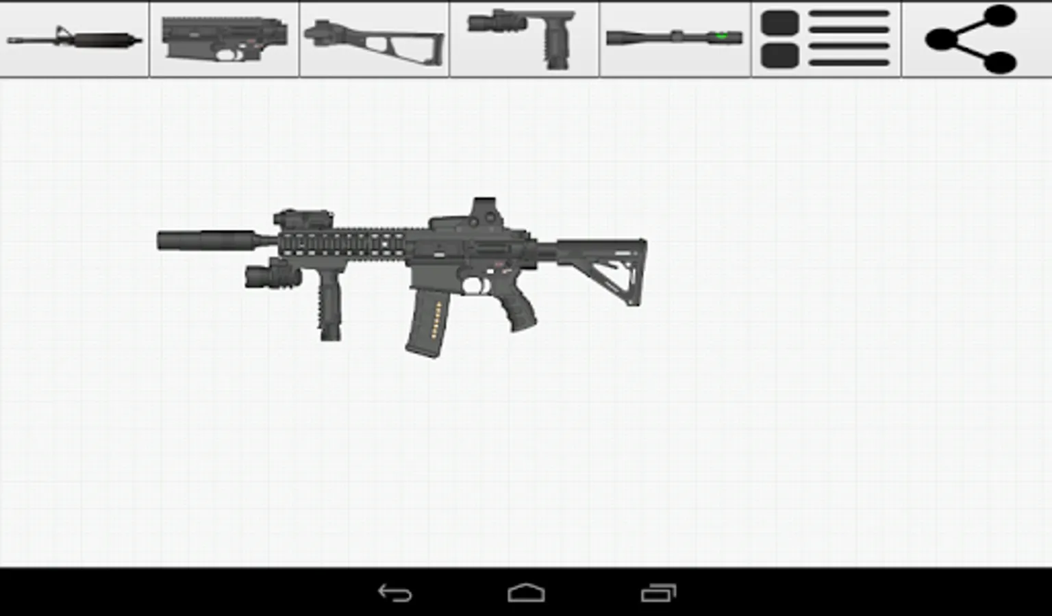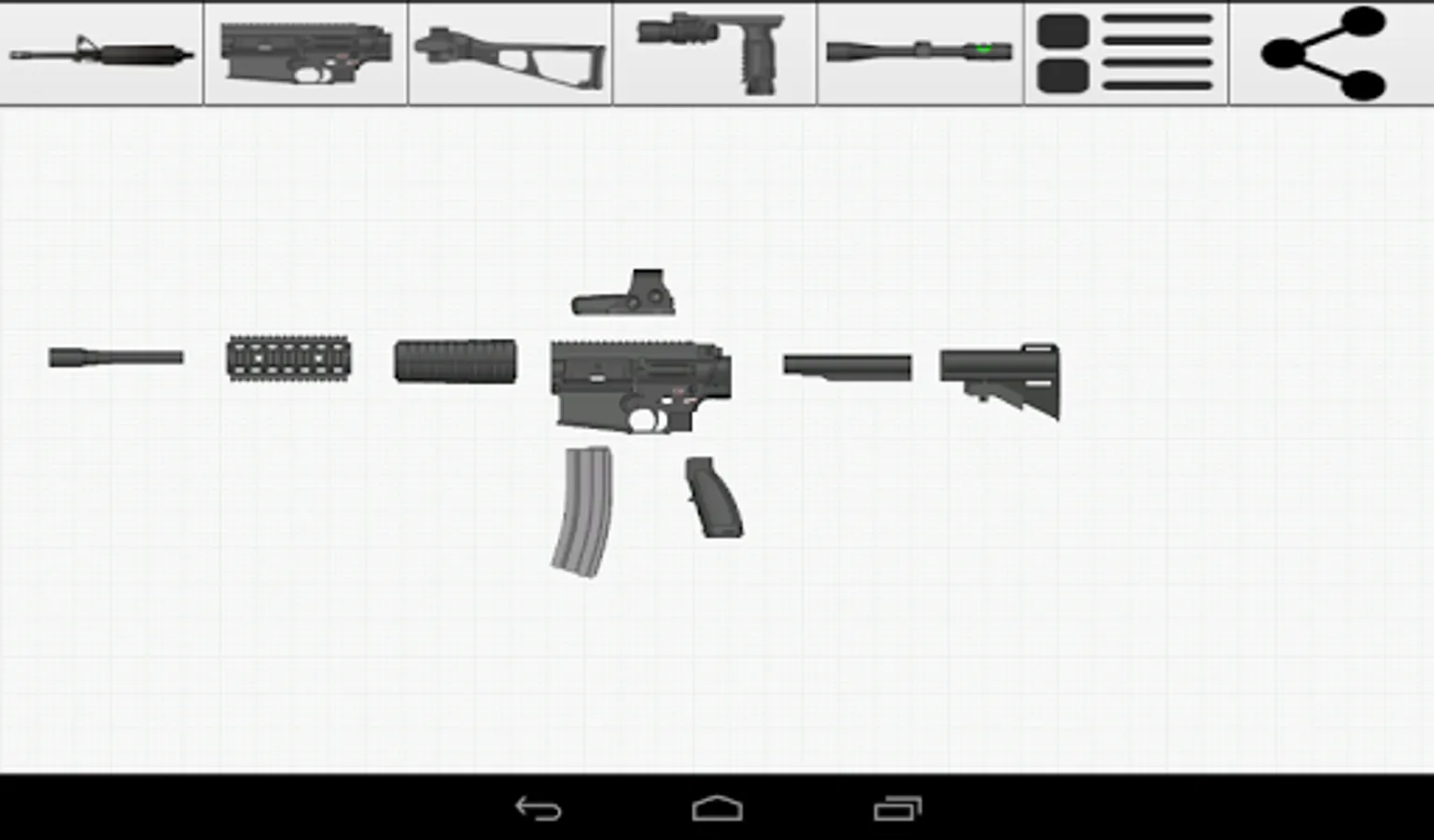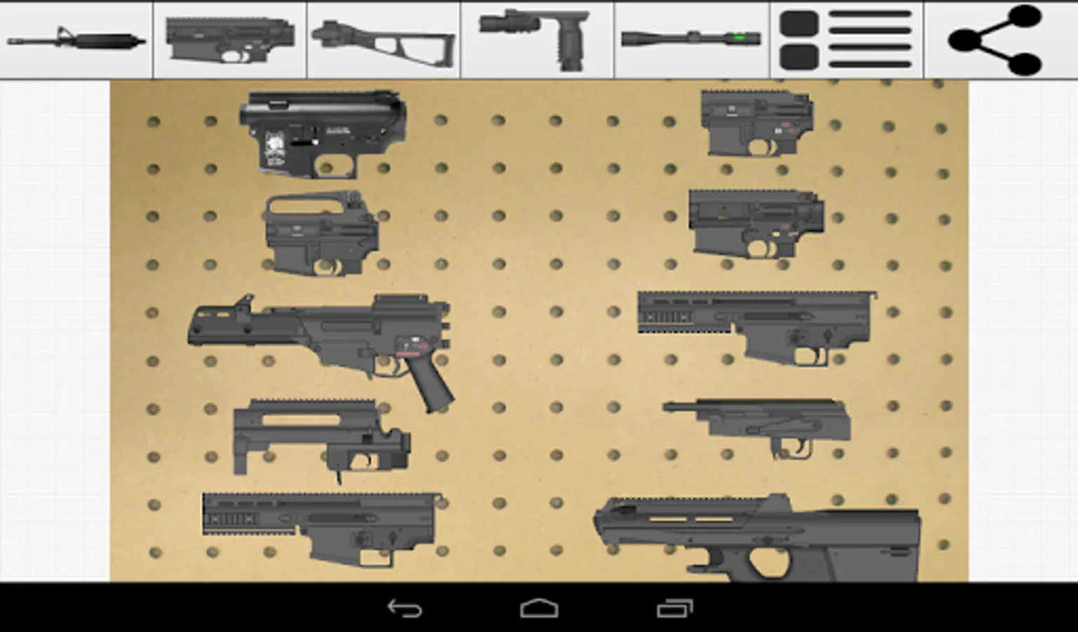 Weapon Builder is a fun app that allows the user to build a custom weapon on their Android device and export it as a graphic to share.