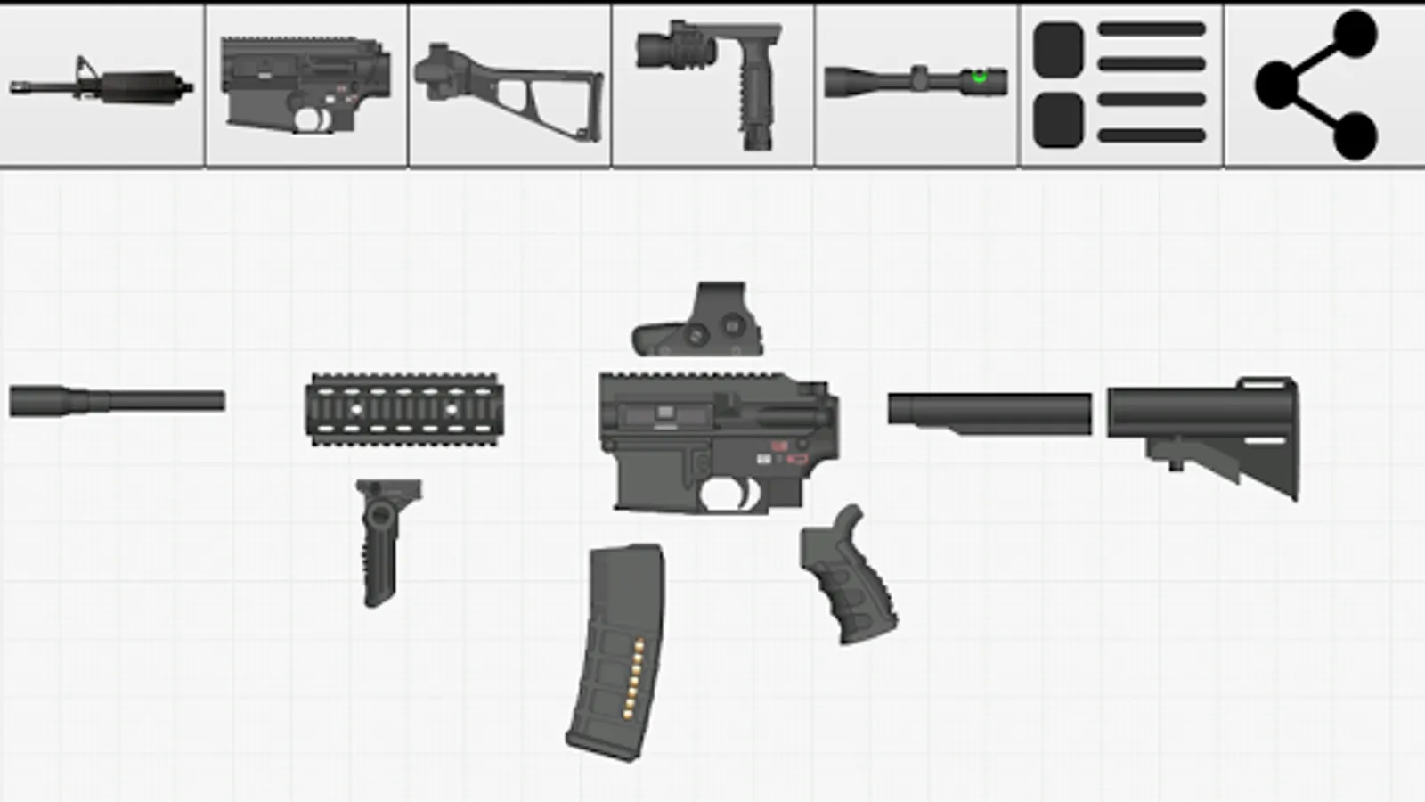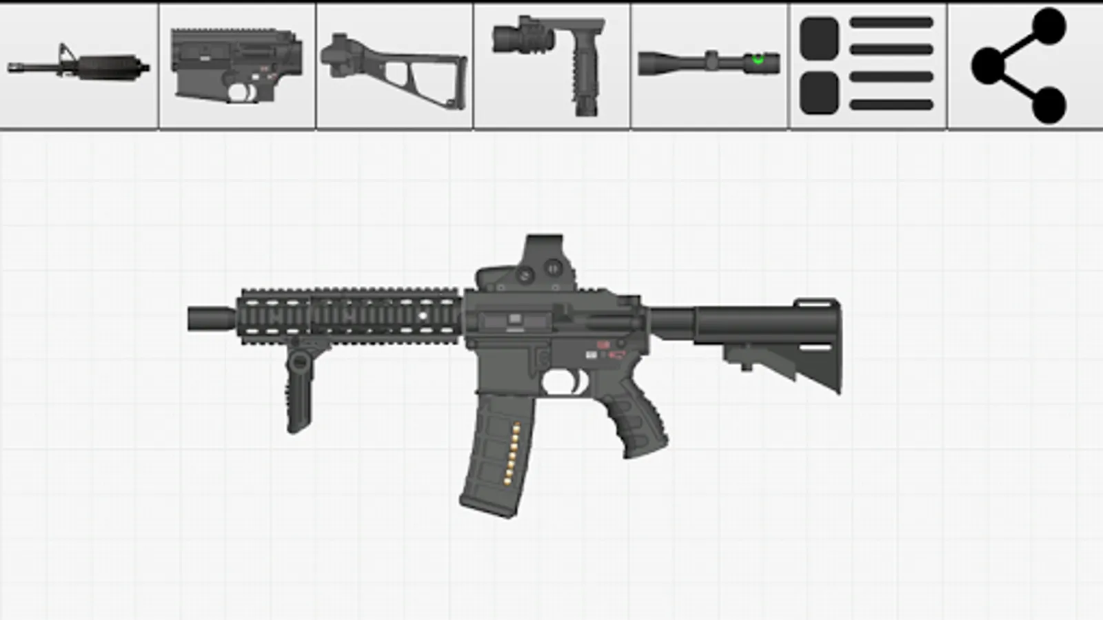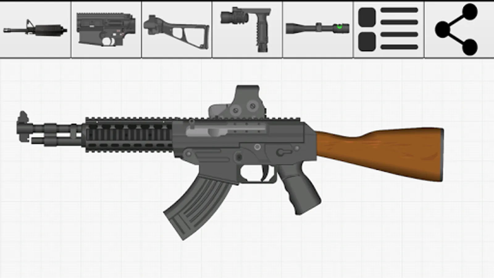 Weapon Builder is a fun app that allows the user to build a custom weapon on their Android device and export it as a graphic to share.