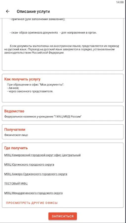 In this application, you can also familiarize yourself with detailed information about the addresses of centers and offices, as well as their mode of operation.