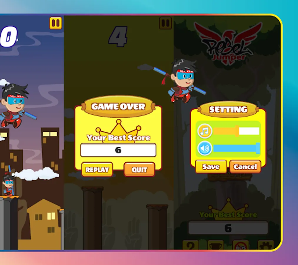 - Rebel Jumper contains ads like banner, interstitial, video and house ads and it's free to play.