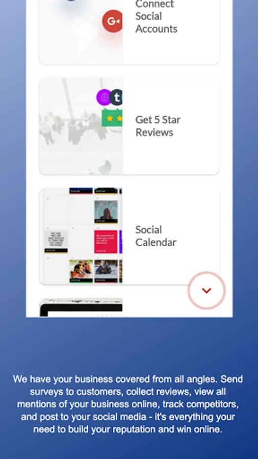 The SuperCat 360 app gives you on-the-go access to Testimonial Collector, Reputation Manager, Social 365, and Competition Tracker. Send surveys to customers straight from your phone, monitor all your reviews from one place, and keep an eye on what people are saying about your top competitors online.
