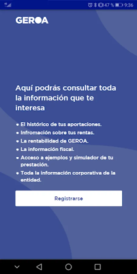 EPSV PENTSIOAK GEROA makes available to all its workers a simple application partners so they can access their MEMBERS AREA anytime and anywhere. Through your Smartphone or Tablet with Android System, you can view your personal information, contributions, assets, profitability and even access your tax information for the last year. And all with a fortnightly update.