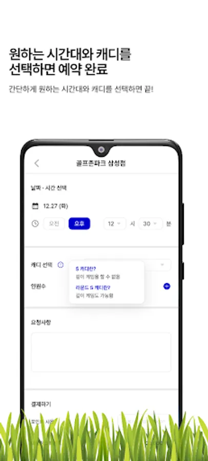 Open the ‘S Caddy’ app and click a few times to complete your reservation and payment.