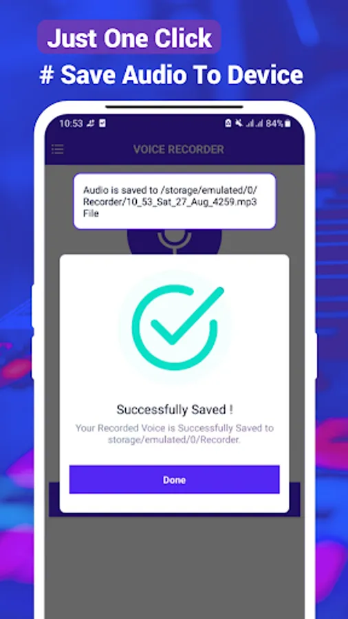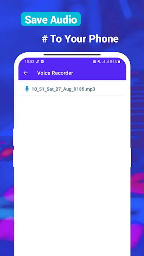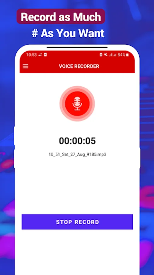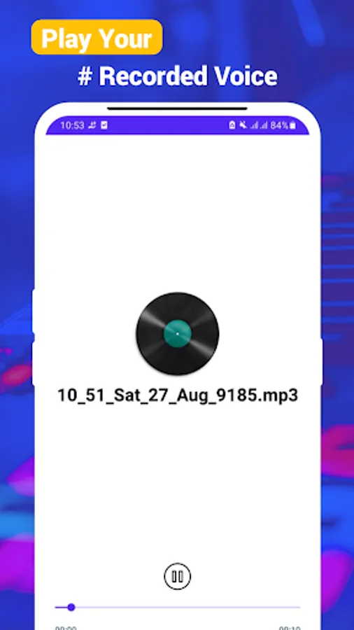 Record your voice in high quality with this fast and simple application, just press the record button and record your voice, then save it to your phone and see it whenever you want.