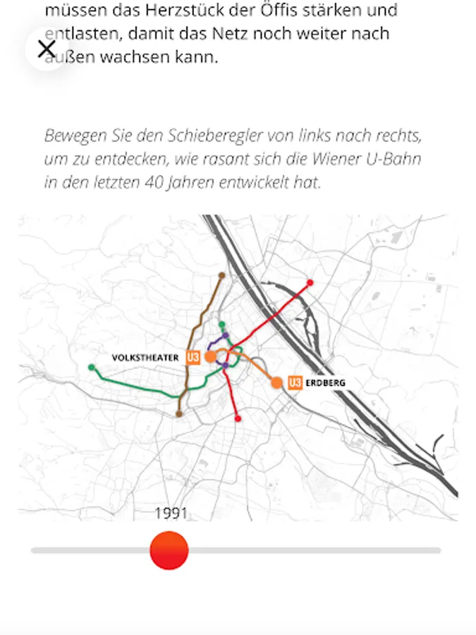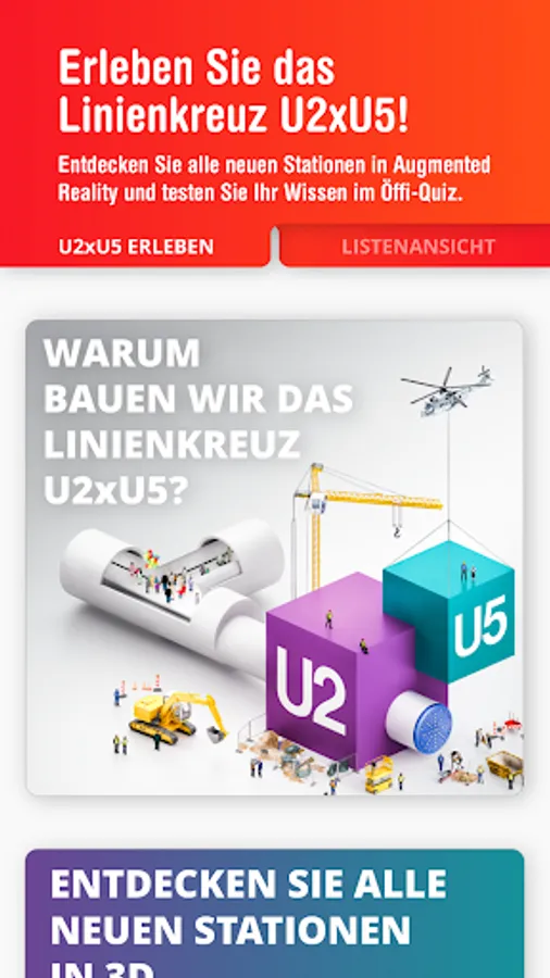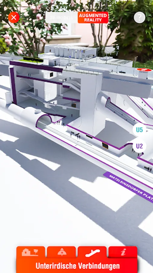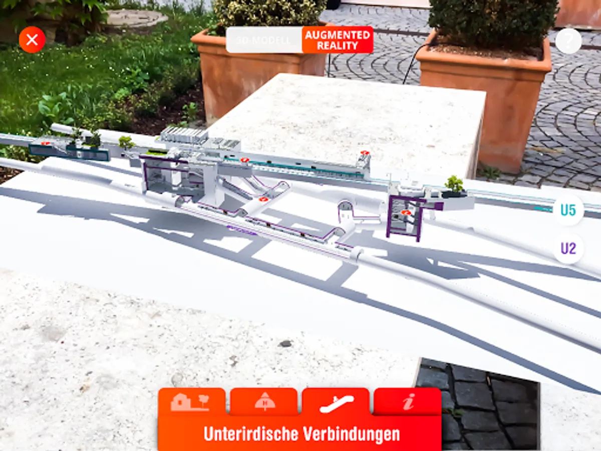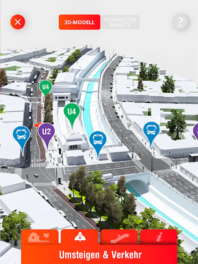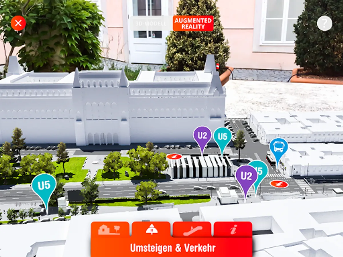 With the App of Wiener Linien, the new stations can be explored in 3D or augmented reality. Immerse yourself interactively with the model of each station and explore the different levels of the new subway stations. At important locations, additional information about structural changes in the barn and planned ascents is displayed directly in the model. After a change of perspective, you can also explore the subterranean levels of buildings to test your knowledge in the quiz.